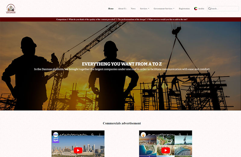 This site has been created and placed for all companies. Engineering, contracting, building materials and heavy equipment. To save time and effort for our valued customers. To search and communicate with ease. With any company through which you want to establish your home. Our goal is to make you comfortable and put everything related to construction. From A to Z in your hands.